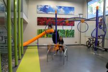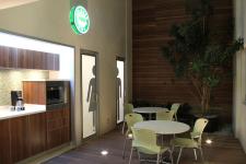 The main showroom has double height that was used to make a more ample space and replicate the feeling of a playground, one of the main activities of the company. The floors were covered with a metallic shade vinyl floor with a lemon green stripe that marks the access. The back of the room is round up with a series of oil paintings –created specially by renowned artist El Cejas- for this project depicting the grass, flowers and blue sky. The whole space is integrated to the next level by a stainless steel and glass staircase that leads the way to the executive offices. The dynamic and color of the showroom is enhanced by the generous use of natural light, that in the evening is replaced with an automated system that emulates diverse ambiances.