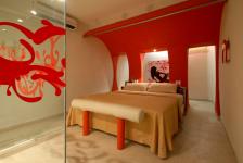 The main goal in the design of this hotel is stimulating emotions. Inspiration comes from the color selection, a daring mixture of red and turquoise that gives life to the smallest detail. Fun and original friezes, synthesized from the graphic art of each room, give an original highlight to the whole space.