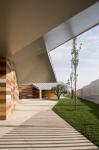 Opposite to the plan disintegration, a seamless flat deck that rises, falls and breaks as a function of interior spaces, gives the whole a unit and topographic character, providing each use a specific height. Classrooms` broken profile allows dual lighting and increase its depth, with a well-suited square size. Outside, the building is defined by a continous roof of inclined walls over a ventilated facade made by a large-format ceramic-extruded cladding. Ceramic fixed and anodized aluminium slats and the metallic finishing of the porches complete the exterior image of the building.