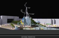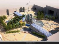 Basic circulation demands continuity along two perpendicular middle axes, one of them is shaded by photo-voltaic solar collectors. One of the four quarters of a circle, resulting from these two axes is designed as amphi-theater, descending from ground level to basement. Considerable space is devoted to temporary exhibitions.