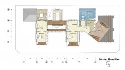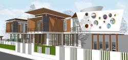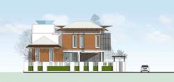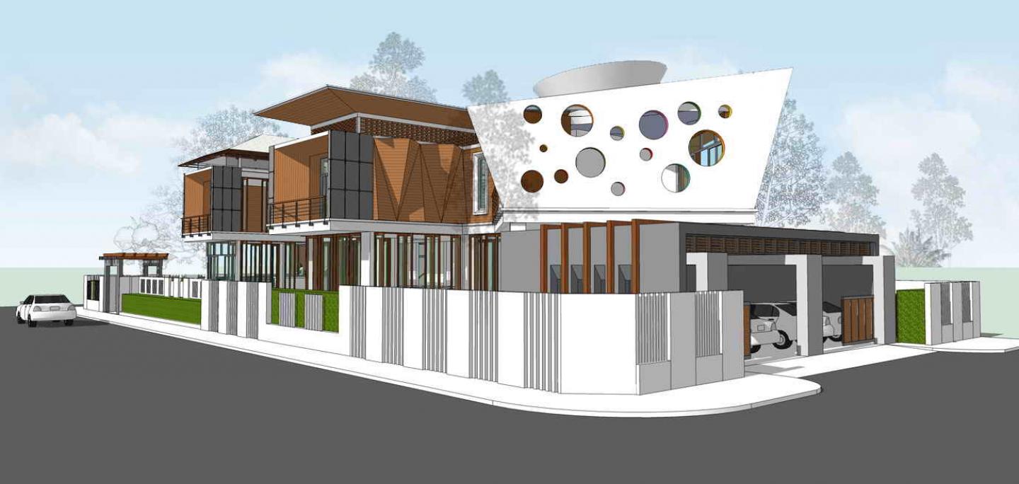 The living-house for a young family is located in the sub-division project of a small settlement in Songkhla province and is harmonious placed into the lush landscape. An unconventional building organization and placement of the house was developed further in an imaginative and thoughtful way advancing modern Thai house, energy and living concept. The client wished for a contemporary living experience that is blended into the existing landscape. The outcome and design solution is a surprising habitat at that reflects the way the family lives incorporating design quality, sustainability and functionality in every life. The U-shaped house is an innovative design approach that merged the needs of it’s residents with social and environmental contexts. The house, with 850 m2 of usable floor area, impresses with its generous view of “Do-dao space.” The deliberate and expressive building from establishes a dialogue with its surrounding landscape that providing a sense of tranquility and coolness. At the same time, the building achieved the very stringent local classification of a low-impact by using the passive design in the context of green architecture. Additionally, the building’s orientation and placement increased the comfort for the inhabitants.