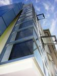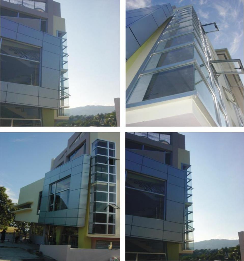 The building is of reinforced concrete with aluminum cladding and glass on aluminum opennings