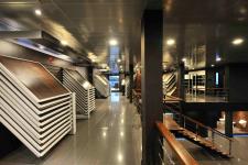 Situated in one of the most prominent corners of Colombo’s very own ‘Tile Town’ at Nawala, The Rocell Bathware Concept Centre succeeds admirably in illuminating the myriad options available to anyone choosing fixtures for a modern bathroom. The imposing glass frontage allows light to flood the display space while the secluded rear is cool and shady, permitting customers to see clearly how their choice of fittings will appear both during the day & night. After passing an attractive stone & pebble courtyard, one enters through the glass façade and proceeds along a tiled catwalk, flanked by chunky minimalist wooden boxes where one can sit & admire the array of luxurious Wash basins, water Closets, Taps & Showers. A wide, airy wooden stairway affords access to the upper story where a wide array of tiles in all colours & patinas are mounted on tile rack boards for the customer’s perusal. At night, the showroom takes on another dimension as light spills out of the glass front, giving it more the sophisticated air of a nightclub rather than a place to purchase bath-ware & tiles.