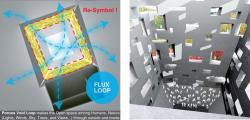 is the peace of the humankinds. It is the communication beyond the country, the religion and generation by having the event for the dialogue at the inside void. In the air of the void, the people can the big communication from the 360 degrees and looking over and looking down indirectly. At the ground, the people can the intimate communication face to face directly.