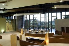 The stepping also ensures unobstructed views creating separate areas as well as providing privacy. This also allows other functions such as the internet cafe and library areas to be defined and yet open.