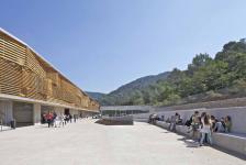The landscaping program is centered on the west side and follows the grade of the land. A landscaped access ramp stretches along a maze of small stone foundation walls, slightly dislocated and typical of a Mediterranean know-how. High towering trees provide just enough shade for the offset car park and the gymnasium near the sports fields. The project innovates in terms of a better outside flow of pedestrian traffic. It ties the building to its site and makes it a continuation of the valley’s natural environment, bringing all elements together in an orderly way for a well-built and coherent result.
