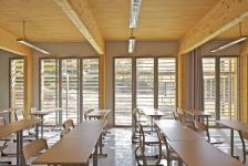 Designed from the very beginning to be cost effective as regards to energy needs, the project totally qualifies to be HQE certified. It is the first lycée built partly in wood in the PACA region. The wood part of the structure rests on a wood floor which itself is set on wooden subflooring. The lumber used comes from neighboring forests sustainably managed and the insulating material used is wood fiber.