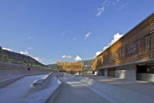 Such respect for the landscape holds also true for the choice of materials. Just like any other building in the upper valley, the foundation of the lycée is made of stone and the main body of wood.