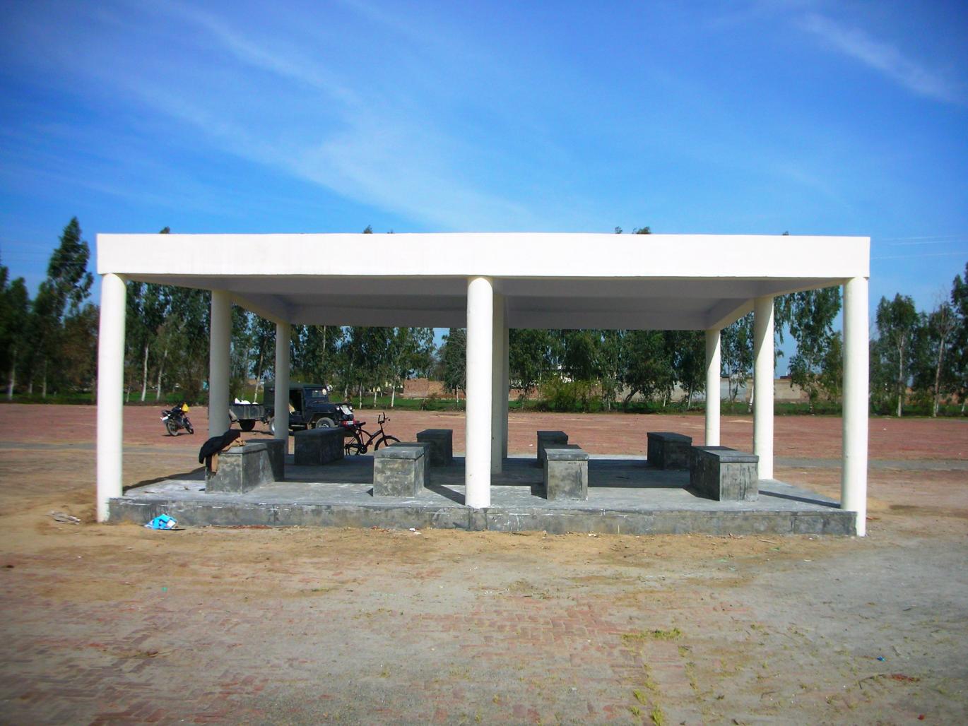 This is a small 30-0 x 30-0 RCC structure built in Purchase Centres (Small Grain Markets) in Punjab. It is meant to protect the farmers from harsh summer sun /rain when they bring their produce to the centre for selling. So far more than 1500 such shelters have been built throughout the state of Punjab.