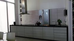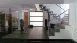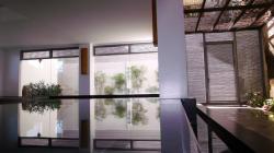 The rear part of the property is bounded by a lime rock face. We open the rear portion to make use of the beautiful raw rock face that adds sensual experience to the inner spaces. A pool on the basement with peripheral glass panels and steel louver for air to gross ventilate. The effect of the pool is for cooling, cooling the upper space which is the living room and the dining room.