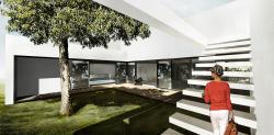 Internal atrium provides privacy. The shelter space gives a feeling of security. The atrium integrates each functional zones of the house. Glazed interior is open to the atrium so the Tree becomes significant exhibit to the individual spaces.