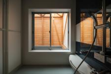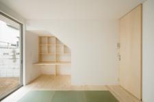 The house is designed for a couple, and is a wooden three stories house that is built at urban narrow site. Around the site is the mixed-use area where small houses, small factories, and small office buildings coexist together without any harmony.