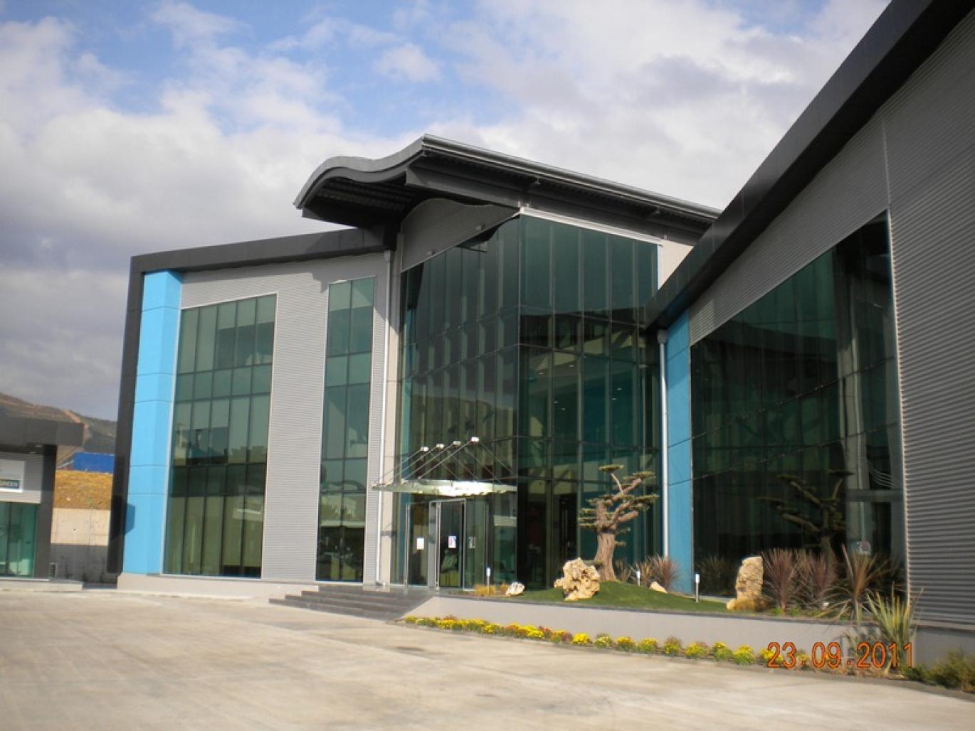 İzmir serbest bölgede konumlanan Akzo Genel Müdürlük binası içinde çeşitli işlevleri bir arada barındıran 2871m2’lik İdari bina ve 936m2 lik Hammadde Ambarının oluşturduğu bir yapıdır. Genel müdürlüğün gereksinim programı, ana dolaşım holünün her iki yanına eklemlenmiş ofisler ve sosyal birimlerde çözülmüştür. Yapının merkezindeki düşey ve yatay dolaşımın çekirdeği olan hol, üst katlarda galeri boşlukları ile bütünsel bir mekan algısı yaratmaktadır. Yapıya kimliğini kazandıran galeri boşluğunun üst örtüsü de bu bütünselliği vurgulamaktadır.