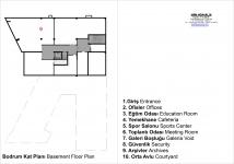 Kullanıcılarının çalışma saatleri dışında da vakit geçirebilecekleri spor salonu ve yemekhane orta avluya açılarak iç ve dış mekan ilişkisini güçlendirmektedir. Yapı düşeyde ana dolaşım holündeki galeri boşluğu ile bir bütün olarak algılanırken, orta avlu, gereksinim programının birimlerinin yerleştirildiği mekanları yatayda parçalayarak yapıyı insan ölçeğine yaklaştırmaktadır.