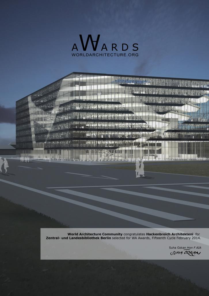 Zentral- und Landesbibliothek Berlin by Wilfried Hackenbroich in Germany won the WA Award Cycle 15. Please find below the WA Award poster for this project.