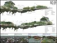 An artificial ground is created. And this ground is pretended to replace the healthcare industry taking the advantage of being self sufficient as regards the energetic point of view, together with the fact of being one hundred percent of public use. This new piece of land cleanses the city rivers and rebuilds the surrounding ecosystems using the biological processes that are owned by the Amazonian wetlands.