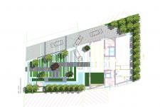 In such a small (1000m2) space threatened by sound and air pollution, as well as the harsh conditions of a hot and moist summer season, the challenge was to create a breathing space in