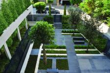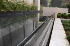 A harmonious connection between softscape and hardscape, a sensitive choice of form, repetition of design elements, a comforting linearity and symmetry, as well as a soothing running-water element, were combined to create a minimal urban garden.