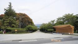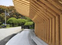 So,we proposed wooden bus stop with a gentle and innovative expression and a animated look by the days and seasons. We mutually shifted 20 L- frames and 19 braces composed by 105*105 standard woods (cypress produced in located area) and bundled them. Therefore we formed a wooden skeleton and put a transparent roof on it airy.
