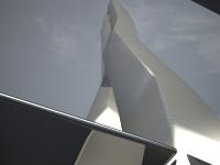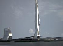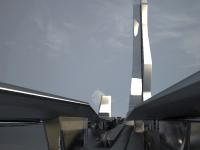 The lightness of the structure is also underlined by the thinness of the vertical element-tower, a sophisticated symbolic sign, defining itself in the sky through a gentle but firm and sharp aspect.