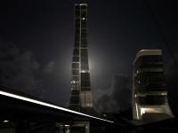 The structure is 470 meters high and occupy an area of approximately 37.000 square meters of footage, not including the covered but open spaces and develops itself for 107 floors in the towers and 37 in the lower building.