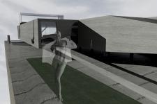 The cracked box volumes is concrete construction, and the concrete is used as a natural and artificial material at the same time.