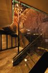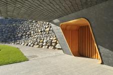 In the second house there are living areas: main hall, living and dining room. It is opened, extroverted and floating over the terrain.