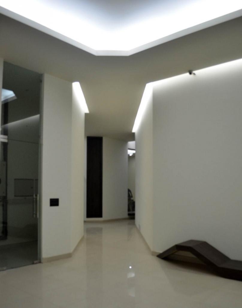 The space is visualised as a plane that folds up at various places and offers niches of distinct size and character. To further enhance it, both natural and artificial lights are introduced at various levels and scales to create the dramatic effect.