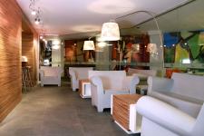 Aurelio Vázquez, director of the firm, teamed up with the talented local artist Cejas, to create a complete graphic language that was incorporated to all the areas in the hotel. Color is the main character and its presence is balanced with simple modern shapes in all the furniture and accessories. In the ground level the guests arrive to a broad reception area and the main corridor that goes to the lifts through the restaurant and bar. The materials selected for this floor are natural stone for the floors and zebrano wood covering for all the walls that give a nice texture that incorporates every area.