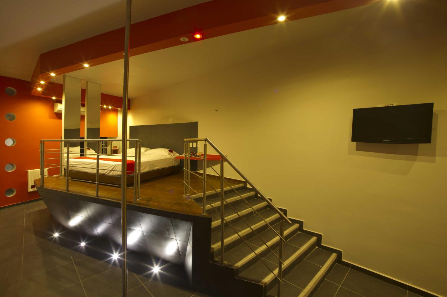 The magic of the theater atmosphere is the inspiration for the design of this hotel. The generous and ample space between sealing and floor allowed the construction of a series of platforms, in different heights, which awake the performance abilities and invite to execute scenes inspired by Erato and Euterpe.