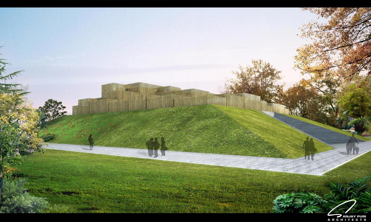 The historical typology of the typical Indian temple with a lower level gathering space and a comical high roof over the deity of the god is reinterpreted in this design.