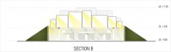 The entire temple space is created with cuboids of varying dimensions that gradually become higher over the focal deity in a fragmented way. The main gathering place is surrounded by earth mounds and sky lit creating a naturally ventilated cool inner space in response to the average temperatures of 35°C of the temple’s location.