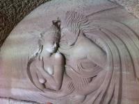 It is a fun and cheerful design and application that integrates with the existing natural rock caves.