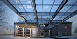 This design followed strict requirements to the construction of contemporary art centers which ban damaging or irreversibly altering a historical monument, and order to safeguard and restore it as best as possible. So we designed a number of minimum additions providing both for all modern functions at the same time being stylistically neutral and meeting the safeguarding policy. The original layout of the overall building as well as its facades and surviving architectural elements remained intact. New elements are proposed to be set on the rear facade of the building, which is not a heritage site and doesn’t alter the building’s original outlook as viewed from the main city streets.