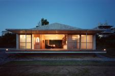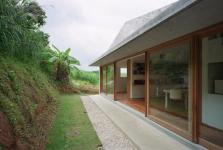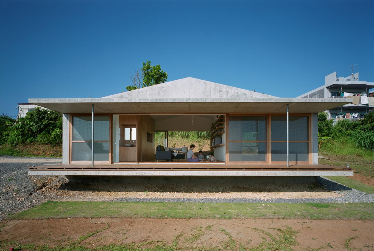 It takes 40 minutes by ferry from the nearest island with an airport to reach Iriomote-Island, which is a part of Okinawa in the south of Japan. With an area of over 90% covered by subtropical virgin forest, the entire island is designated as a national park. The client had lived on Iriomote- Island for 14 years. Now he wanted to build his own house.While sitting snug against a hill, at the front of the house a luxorious vision opens up overlooking the farmlands that spread around the site.