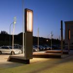Certain flexibility for the furniture is needed, so its realization is made with concrete, keeping the characteristics elements: sitting, lighting, and adapting its length and position according the needs. This element has a corten steel box on the top, which contains the lightings.