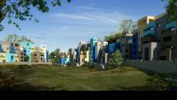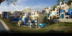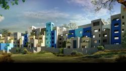 Each of the residential blocks too, designed in structures of 2,3,4,& 5 levels are fragmented to create series of volumes interspersed with landscaped spaces creating an organic series of built form s like the traditional cities of the region. These are colored in the traditional colors in lime plaster in varying hues of blues and yellows.
