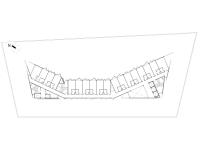 The built form twists from the north east edge of the site running parallel to the rear boundary and then twisting back to meet the north west edge of the site.
