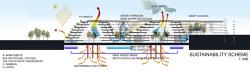 The planted terraces and green filters will contribute to the reduction of air and sound pollution. The green roofs will contribute to the mitigation of rain waters and participate in the general water management process. They will create an important factor for reduction of the heat island effect in the city.