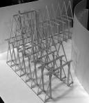 This is a small reading room stocked with childrens books by Shinta Cho. Shinta Cho is one of the most important picture book writer in Japan. This reeding room is located in passage space of the 21 century museum of contemporary art KANAZAWA. Nestled within the starkly white spaces of the museum, I have created a narrow passageway of crisscrossing wooden beams painted in a distinctive vermilion hue that recalls both the entrance to a Shinto shrine and the steeply sloping pitch roofs of primitive house dwellings. Visitors pass through this zone of transition and emerge into a kind of sacred grove, where they can browse Cho s delightfully whimsical manga fairytales at their leisure.