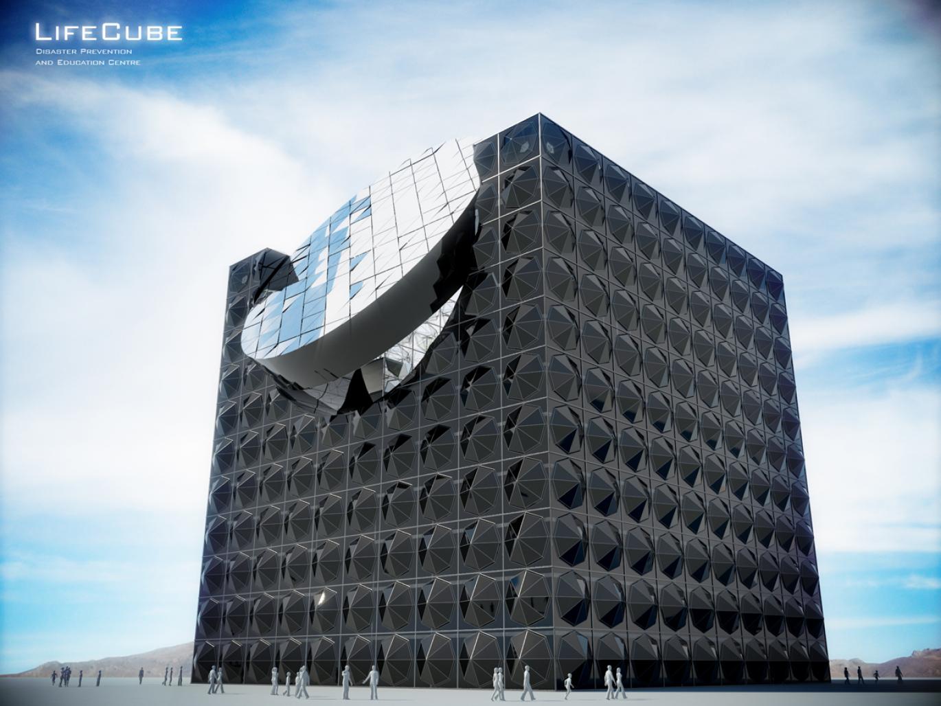 The building includes features aimed at teaching people how to behave in case of various emergencies, serves as a refuge for city dwellers, food storage, inform center, water tank and training center at the same time informative.
