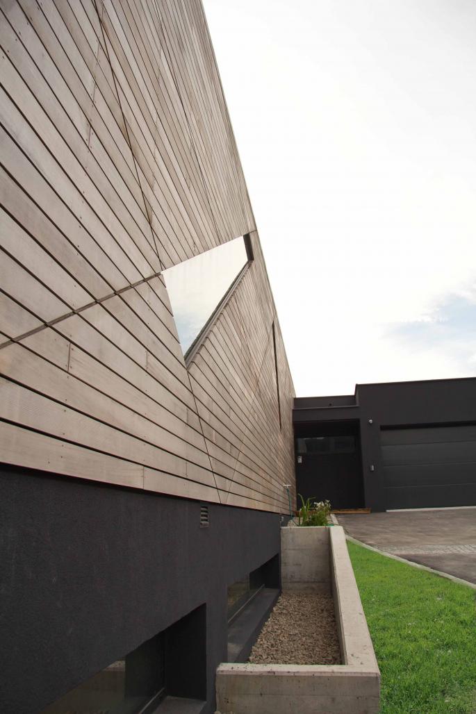 For the design of the single family house, the basic structure of a classic gable roof house was connected with modern architectural elements. The facade was wrapped with cedar wood. The asymmetrical slits wind around the building like a ribbon holding it together. The windows were stylistically adapted to this design element, so that the classic architectural building apperance is openend from the outside as well as the inside. Therefore the family gets to see the enviroment from many different perspectives within the house.