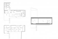 The living area of the house is divided into three levels. The ground floor with the entrance hall, a large living and dining area which remains open through the roof in about 4 meters. Additionally there is a guest room with private bath and a terrace connected to the entrance and dining area, with garden access. On both sides of the ground floor the family has the possibility to reach an office room on the first floor, from which you could overlook the living and kitchen area.