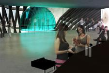 The tower’s program consists of a visitor center, an aquarium, an observatory, a café bar, a souvenir store, an exhibit space and a roof plaza. These spaces can be rented for events, providing an extra funding source for Miami’s new landmark. At ground level, a modification to the site extends the plaza over the water creating a strait which brings water into the plaza and softens the edge with native mangrove trees, creating a habitat for wildlife. A visitor center is housed in a spherical structure - whose diameter is the same as that of the existing fountain - that acts as an enabler of public activities extending the character of the plaza to a changing perception of the structure as the visitors navigate through a spiral ramp that submerge them into a more intimate view of the marine life at the Bayfront Park. The sphere also performs as a power generating component as it houses a vertical axis water turbine that uses the sea current to produce hydrokinetic energy to power the structure, providing a renewable energy source with minimal impact on the environment.