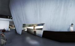 While accessing the upper level via the spherical elevators, the visitors get a unique view of the tower’s design and views of the city. In the upper level, lobby space and café bar areas greet the visitor with its conical slanted walls and amazing views of the ocean. Moving around the observatory space towards the east side, one finds a spiral ramp and exhibit space which takes the visitors on a journey where a mural displays the history of the city and its Diasporas. This is a space for self reflection; the ramp creates a void - the Diaspora in all of us – framing a unique view of the ocean below. The top end of the ramp faces the west at the roof plaza, providing a complete view of Miami’s unique and ever-changing skyline.
