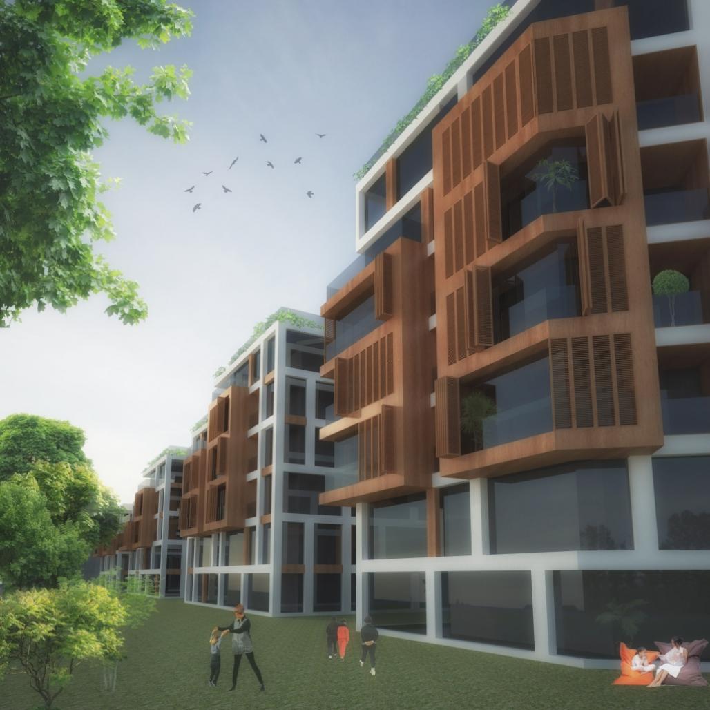 A contemporary reinterpretation of façade elements of traditional Turkish architecture were aimed by the use of wood clad projections and wood shutters.