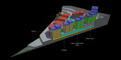 Numbers and types of residential units were determined according to the researches conducted by the client. Those were allocated to the blocks during our joint studies with the client on physical models of the project. Smallest units were planned inside the bigger blocks on the upper platforms whereas the bigger ones were located inside the smaller blocks below that have their own private gardens.