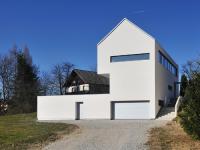 The presented single-family house is built in the village of Suha, in the suburbs of a famous medieval town, Škofja Loka in Slovenia. The building is built as a replacement structure on the site of a former farm building which represented the eastern side of a unified space of a farm courtyard. Due to the cultural heritage regulations the new building has a gabled roof and follows the gauges of maximum allowed building dimensions of the demolished structure. The investor of the new building is the farm owner’s son, who is academically educated and therefore has very urban housing needs in terms of the program of the house, which is located in a traditional rural area.