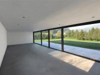The immediate location of the house is situated on the edge of the Sora River slope, turning towards the direction of the river in the south and west, from where it has beautiful panoramic view of the medieval castle built high over Škofja Loka town. The building has a basement, a ground floor and first floor. It is positioned perpendicular to the river slope. In this way the basement opens towards the lower river terrace, while the ground floor is open - with a wide glass surface - towards the farm courtyard, which lies on the upper river terrace. The first floor with the sleeping rooms is facing east. Building’s public access is from the south side via accessible route, offering both access on foot and access with a car to the garages located in the basement. Along the longer, east side an external staircase leads to the main entrance.