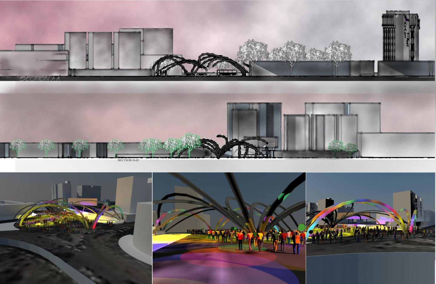 The approach of design was to create a space where people from the city come and protest for their rights. The aim is to create more visibility among the participants which could develop interaction as well as their energies could be channelized and electricity could be initiated. Protesters from every sector can linked themselves to the space with space holding its neutrality within the urban spot.